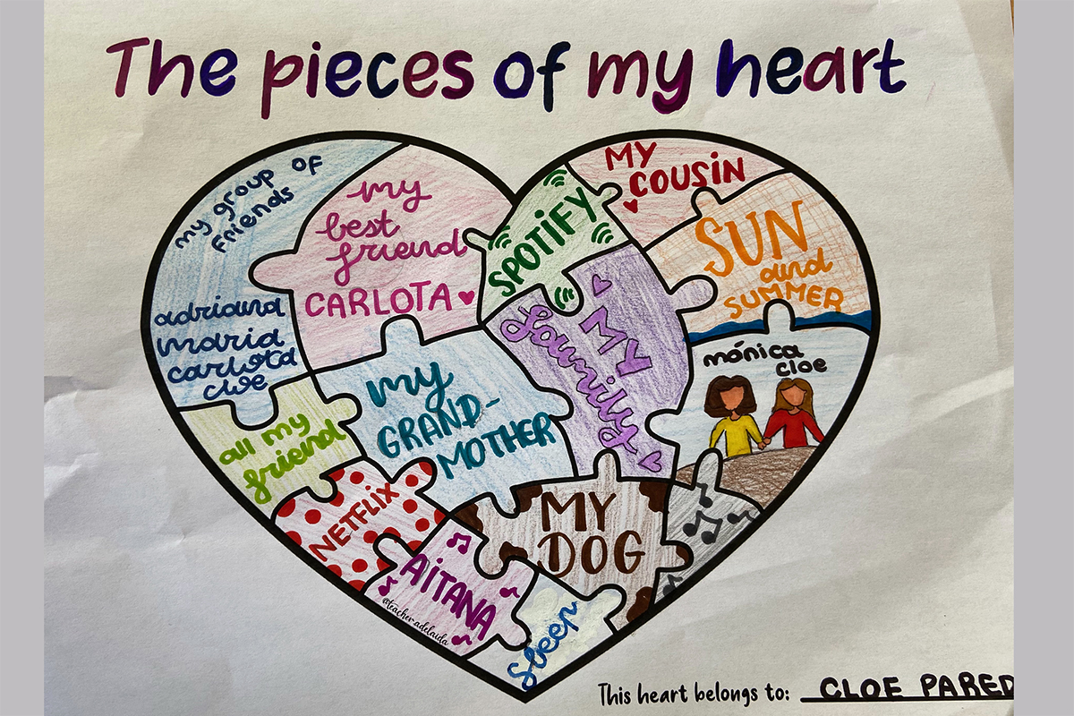 En 1º D , en la asignatura de ECO, los alumnos han completado el puzzle de su corazón con las piezas que consideran esenciales en su vida, y lo han explicado al resto de compañeros.